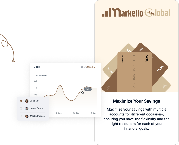 Markelio Global offers flexible savings account options designed to grow your wealth while ensuring security and accessibility. Our accounts are tailored to help you achieve your financial goals with competitive interest rates and secure management of your funds.